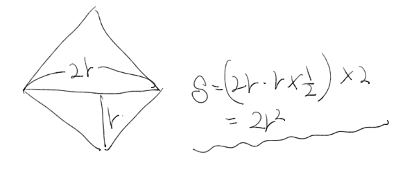 원의 넓이와 마름모의 넓이를 출력하면 되는 문제가 된다.