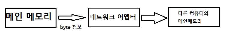 • 우리가 가진 컴퓨터의 메인메모리에서 바이트 정보를 네트워크를 통하여 전달한다.